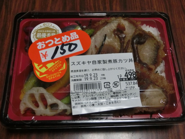 日付が変わりました。昨日は、夕飯の外食の予定がなくなって、どうしたものかと思ったら、期限切れ2時間前だったからか?500円ちょいのお弁当が税抜150円になっていました。外食しそこねたからと、値引きの妖精が舞い降り・・・そんなわけないですがラッキーでした\(^o^)/