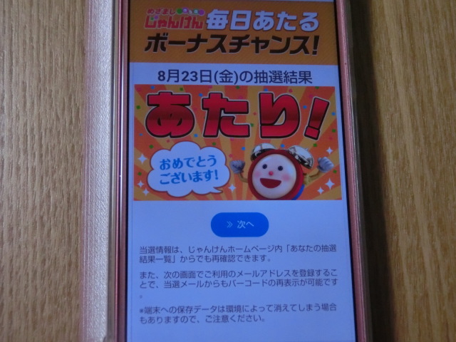 めざましじゃんけんのボーナスチャンス、今日当たりました\(^o^)/どらもっちが食べられるので嬉しいです!嬉しさで思わず、スクショしちゃいました。