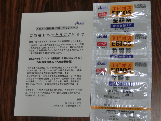 A4サイズの厚紙の封筒で届いたもの、中身は整腸薬のサンプルでした。サンプルはA4サイズじゃないのに(^_^;)