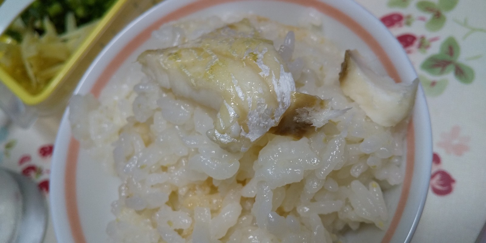 お刺身の鯛の柵を使いましたので簡単です(笑)しかも離乳食用に買ったものを思い付きで炊いてみました。