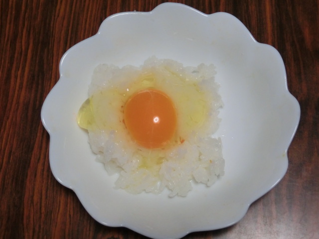 今朝のたまごかけごはん、キレイに卵が乗っかりました。思わず写真を撮ってしまいました。、