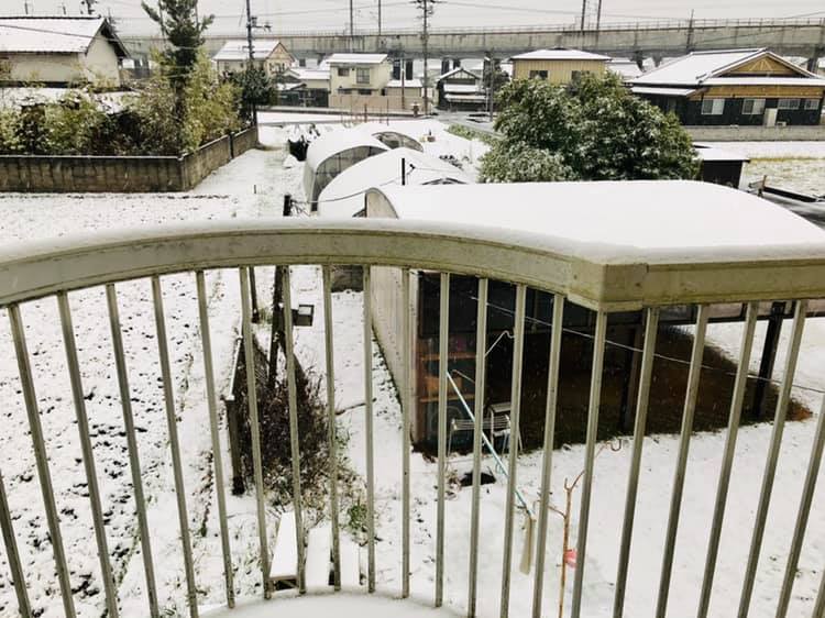 毎朝坊っちゃんとベランダに出ておりますが、今朝はちらちらと雪が舞っていてとてもキレイでした。