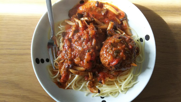 煮込みハンバーグのパスタです