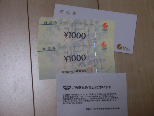 日清食品フェアに応募して、そうてつローゼン商品券が当選しました!当選人数50名なので、