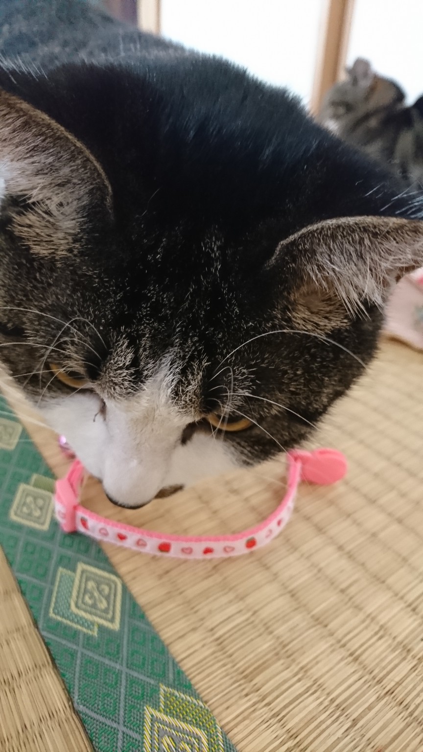 ところでねこさん(小)は自ら首輪を外し私の前に持っていらっしゃいます。