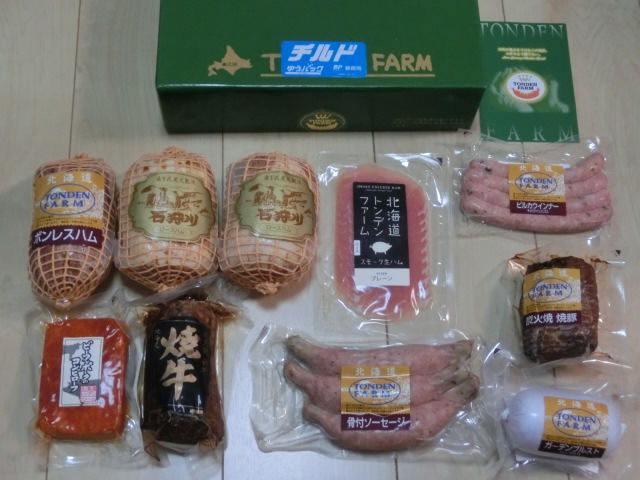 トンデンファームのハム、ソーセージの詰め合わせが届きました(^o^) 今年1月のHondaの抽選会で当たっていた、2等のカタログギフト(2万円相当)から注文したものです。さすがにボリュームがあります。毎日がハム、ソーセージ祭りになりそうです(^_^;)