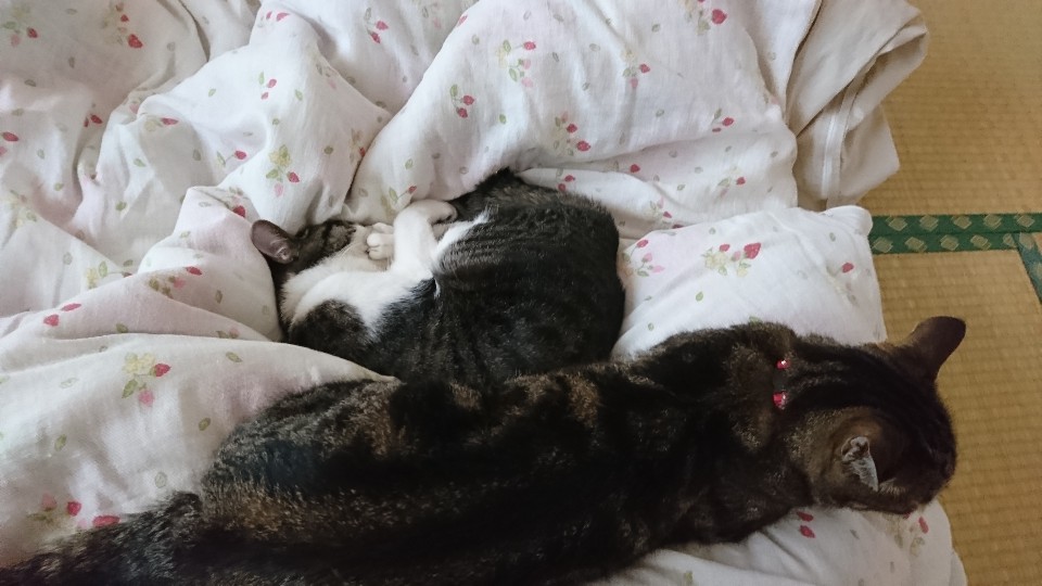 夫は寝返りをうち脇のねこさん(小)を踏んでしまい『にゃっ!!』と怒られておりました。