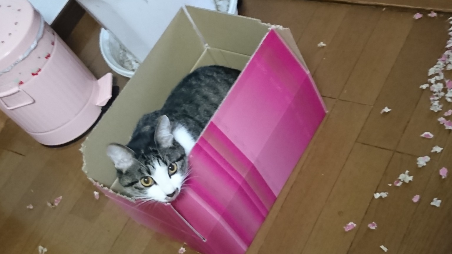 (小)は今段ボールに隠れて(大)を待ち伏せして驚かせて楽しんでおります。