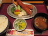 鮪の刺身、鯖の味噌煮、茄子の煮浸し、玉葱のスライス、お揚げの焼いたの。