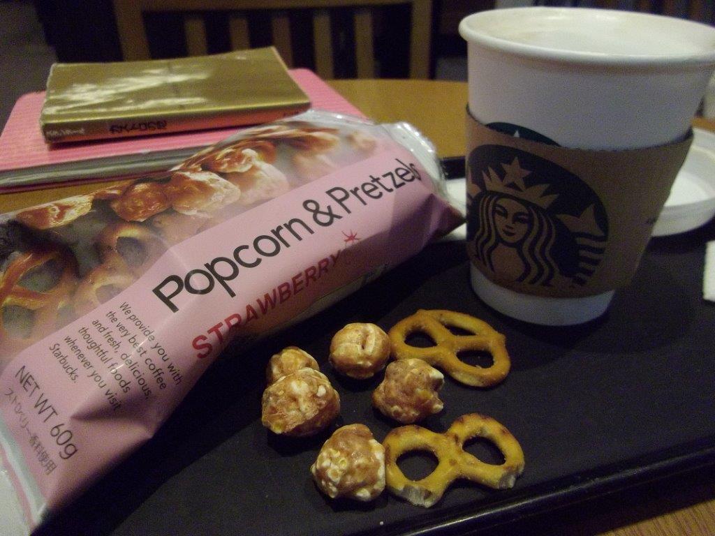 松江駅前のスターバックスで食べたポップコーン&プレッツェル。 色が可愛らしくてコーヒータイムにピッタリでした。