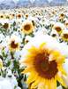 暖かかったので咲いてしまったのであろうひまわりと、急に降り始めた雪のコラボ?です。