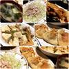本日のおつまみ、ゴロリンでかい帆立のお刺身、豚バラ肉と冬瓜のスープ煮、えびとブロッコリーのサラダ・昆布風味、焼いて美味しいお揚げ、キムチ。