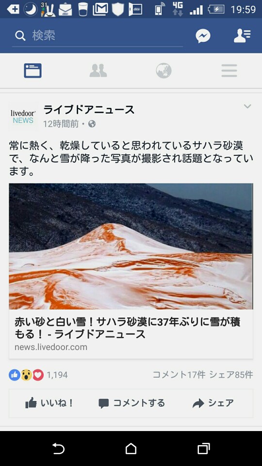 Facebookをお散歩しておりましたら、サハラ砂漠に雪が降ったとの画像を見付けました。