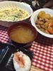 と、もやしと油揚げのおみそ汁に旦那さんが昼に食べることが出来なかった鮭のオニギリ★