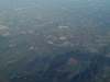 上空から見るとたくさんの風力発電と家々の屋根に太陽光発電があるドイツ