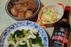 今晩の献立は 豚の角煮と茹で卵、ブロッコリーといかのにんにく炒め、キャベツのサラダです。今晩のお酒は紹興酒です。紹興酒はもち米が原材料の中国のお酒です。紹興酒には アミノ酸が多く含まれ 血行促進と消化促進がありダイエットに向いている お酒なのだそうです。