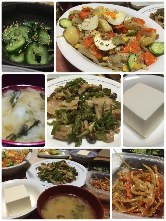 と、ワカメとキュウリの酢の物に大根の皮とニンジンの皮で作ったきんぴら(*^ー^)ノ