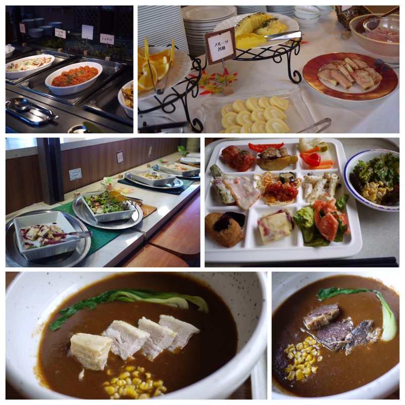お昼ごはんは 温泉ホテルのカレー&バイキングをいただきました。お料理が美味しくて 白ワインが飲みたくなりました。思ったほど食べられず お酒があったらもっと食べられたのにと思いました。