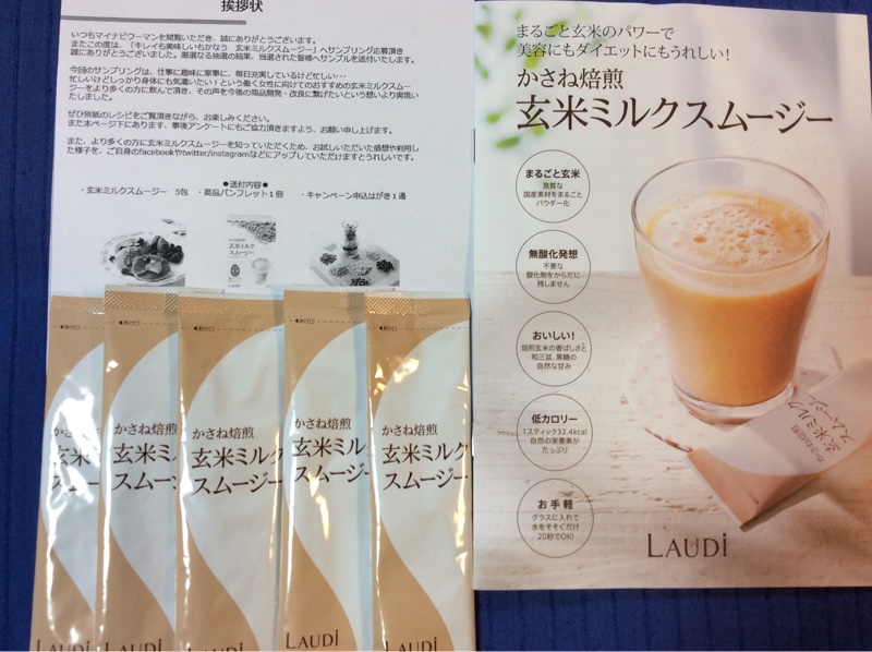 玄米ミルクスムージーのサンプルが届きました。ミネラルと食物繊維が豊富な玄米のライスミルクのスムージーです。最近話題のライスミルク。1度試してみたいと思っていました。さっそく今日のお昼の一食置き換えスムージーに入れていただきます。