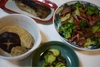 おつまみをつくりました。干し銀がれい、煮物、切り落としベーコンとブロッコリーの炒め物、赤貝缶詰と胡瓜の和え物です。炒め物の味付けはカップのオニオンコンソメスープを少々かけました。ベーコンの塩気と調和していい味になりました。