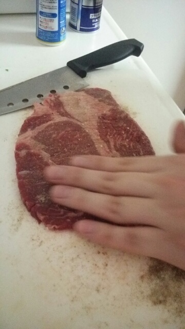 ステーキ制作中の写メです+*:.゚*。●д●*+。・゚