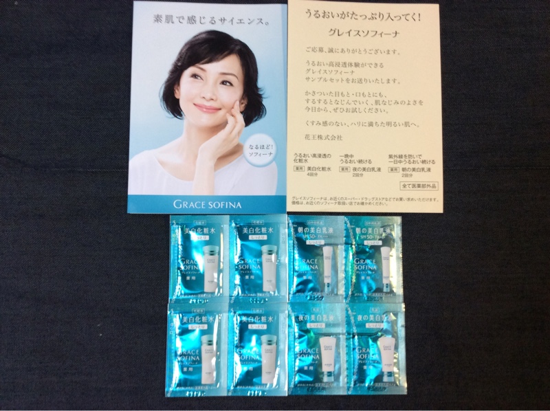 花王 グレイス ソフィーナのサンプルが届きました。化粧水はうるおい高浸透処方、乳液はセラミド成分配合です。年齢肌が気になりはじめた方にぴったりのスキンケアです。