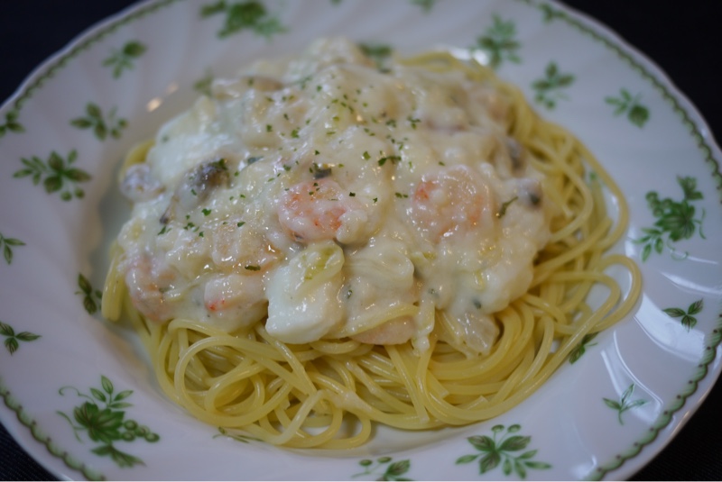お昼ごはんは シーフードクリームパスタです。クリームパスタには ほろ苦い記憶があります。パスタをつくっている時 きのうの事のように思い出しました。あの頃は まだ痩せていて 運動が大嫌いでした。のちにデブになりウォーキングやハイキングに行くようになるとは想像もしていませんでした。
