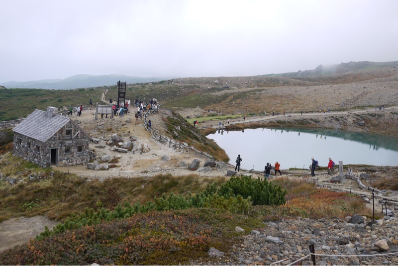 大雪山 旭岳の姿見の池と避難小屋の石室です。昨年来た時は石室の扉は閉まったままでしたが、今年は中に入る事が出来ました。姿見の池の透明感がある水に手を入れてみました。冷たい水から山のエネルギーをもらったように感じました。