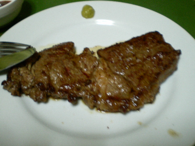 今日は一人晩酌で贅沢に〜と思い牛肉買ってきた〜バターにんにく焼きにして山葵とA1ソースで頂いてます🎶