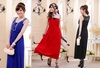 インナー付★Vネック★背中レース♪ロングドレスワンピ↓