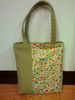 布バッグを作りました。緑の無地は家具屋に勤める娘にもらったインテリアファブリックです。