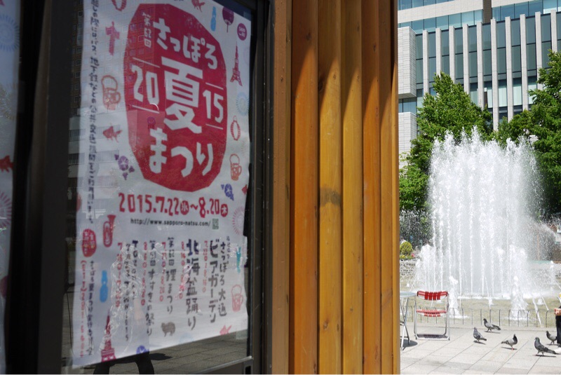 ウォーキングに行ってきました。大通公園で さっぽろ夏夏まつりのポスターを見かけました。