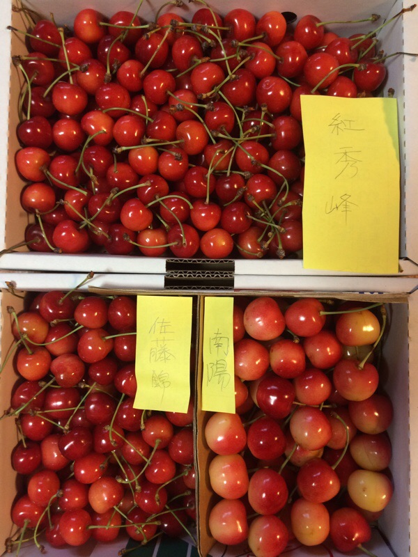 実家から今年2回目のサクランボが届きました。去年不作で食べられなかった南陽が入っていました。南陽はとてもお天気に作用される品種のようです。ほかのサクランボは前回 送ってもらったナポレオンという品種のサクランボより少し高級ということでした。母が品種の名前を入れてくれました。