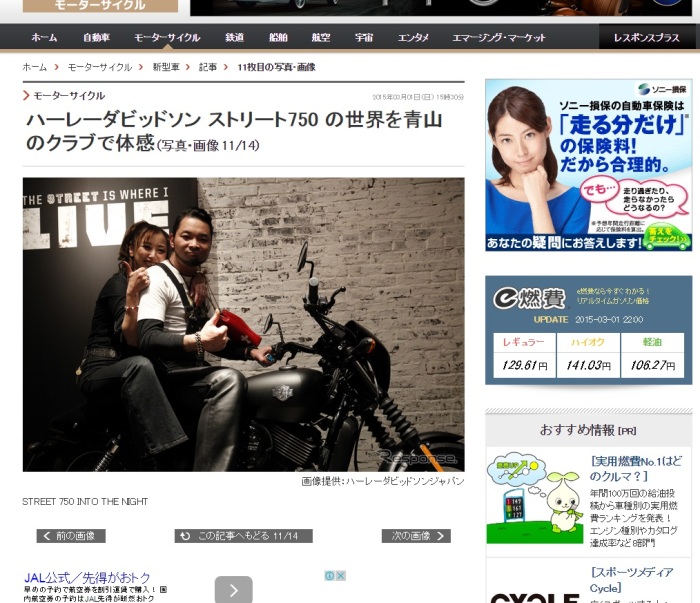 ハーレーダビッドソン ストリート750 の世界を青山のクラブで体感っていうニュース?で、私を発見!(笑)